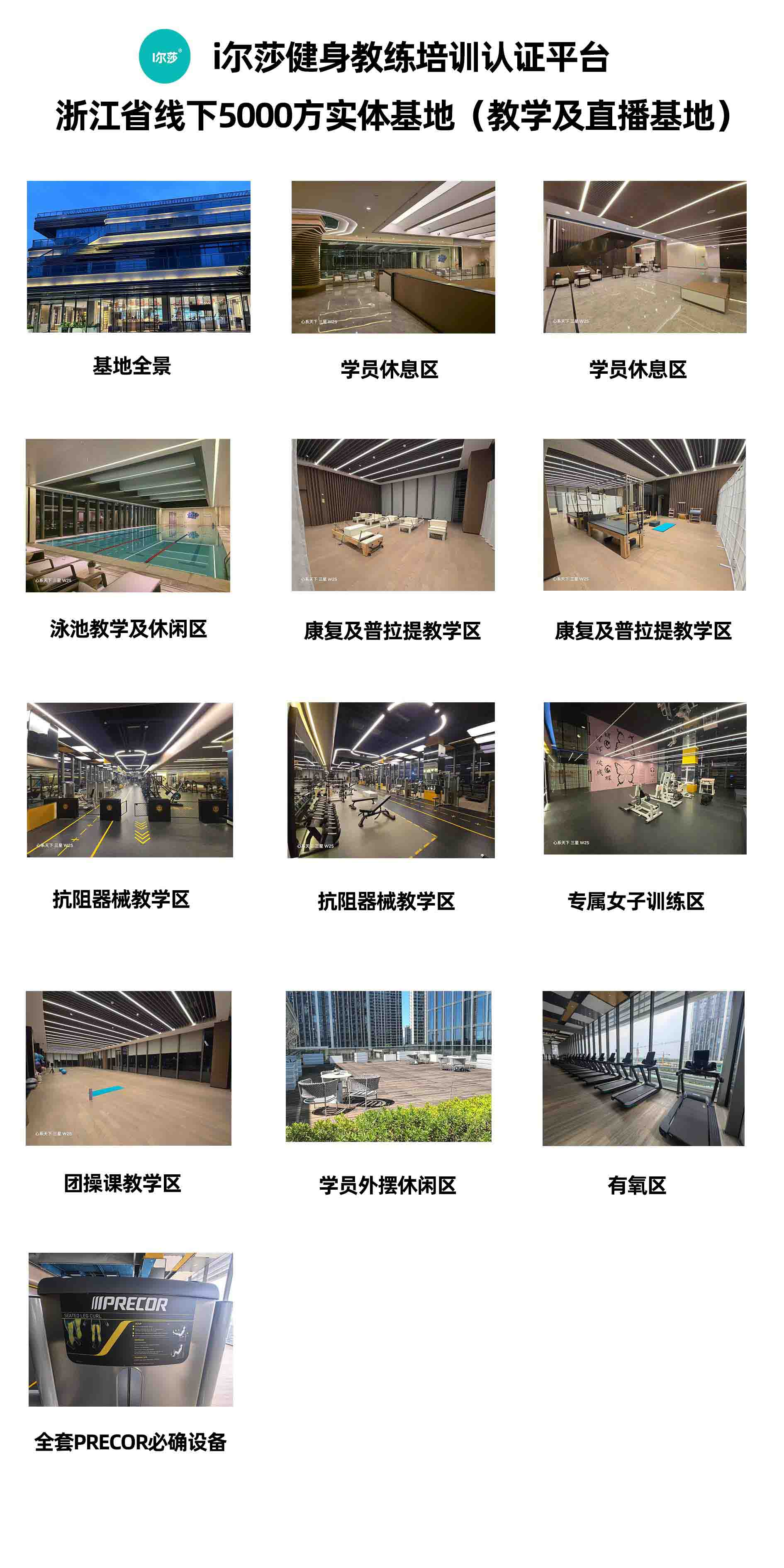 一键开启职业进阶之路 —— i 尔莎教练培训认证平台,隶属于杭州艾尔莎体育发展有限公司,专为健身从业者打造的一站式成长枢纽。无论你是零基础想入行的新手,还是渴望突破职业瓶颈的资深教练,亦或是健身爱好者,在这里都能找到适配的专业路径。我们在浙江省内有 5000㎡教学及直播基地(浙江校区),全套美国 Precor 设备,这座 5000㎡的基地,就是我们给你的 “专业保证书”:你在线上学的每一个知识点,都有线下实体实践;你拿到的证书,背后是实打实的教学场景护航~