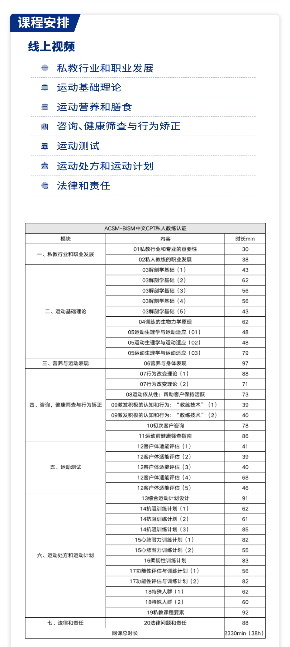 国际四大认证ACSM-CPT线上班