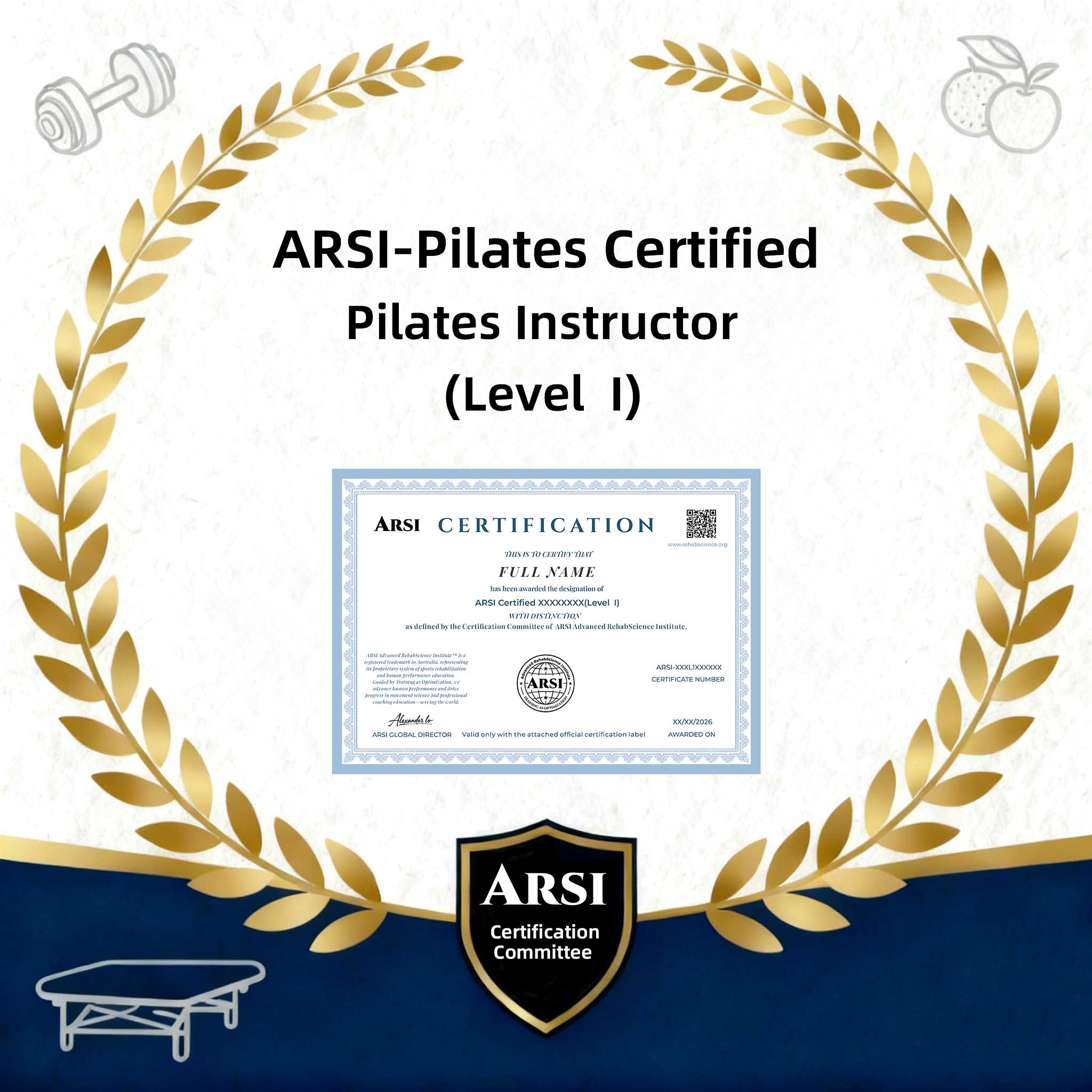 English: ARSI-Pilates Certified Pilates Instructor (Level I)